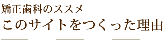 本当の意味での歯科矯正とはどのようなものか、お口だけじゃなく、いつまでも健康な身体を維持してもらうためには、皆さんに矯正治療に関する正しい知識を得てもらうことが大切だと考え、このホームページをつくりました。